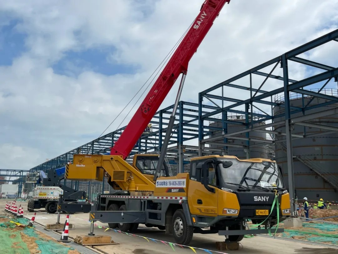 面对项目钢结构及装置安装的施工挑战,目前乐动在线平台在此项目已提供超100台全新的专业设备,包括多台重型汽车式起重设备、履带式起重设备、高空作业设备等,搭配经验丰富的履约服务技术团队全程驻场。从全品类设备供给、安全乐动在线平台、标准化履约管理,倾力为项目施工保驾护航高效。
